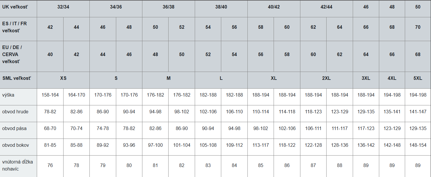 Veľkostná tabuľka: