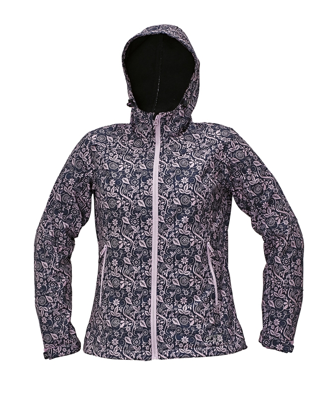- Dámska softshellová bunda s celoplošnou potlačou s kapucňou