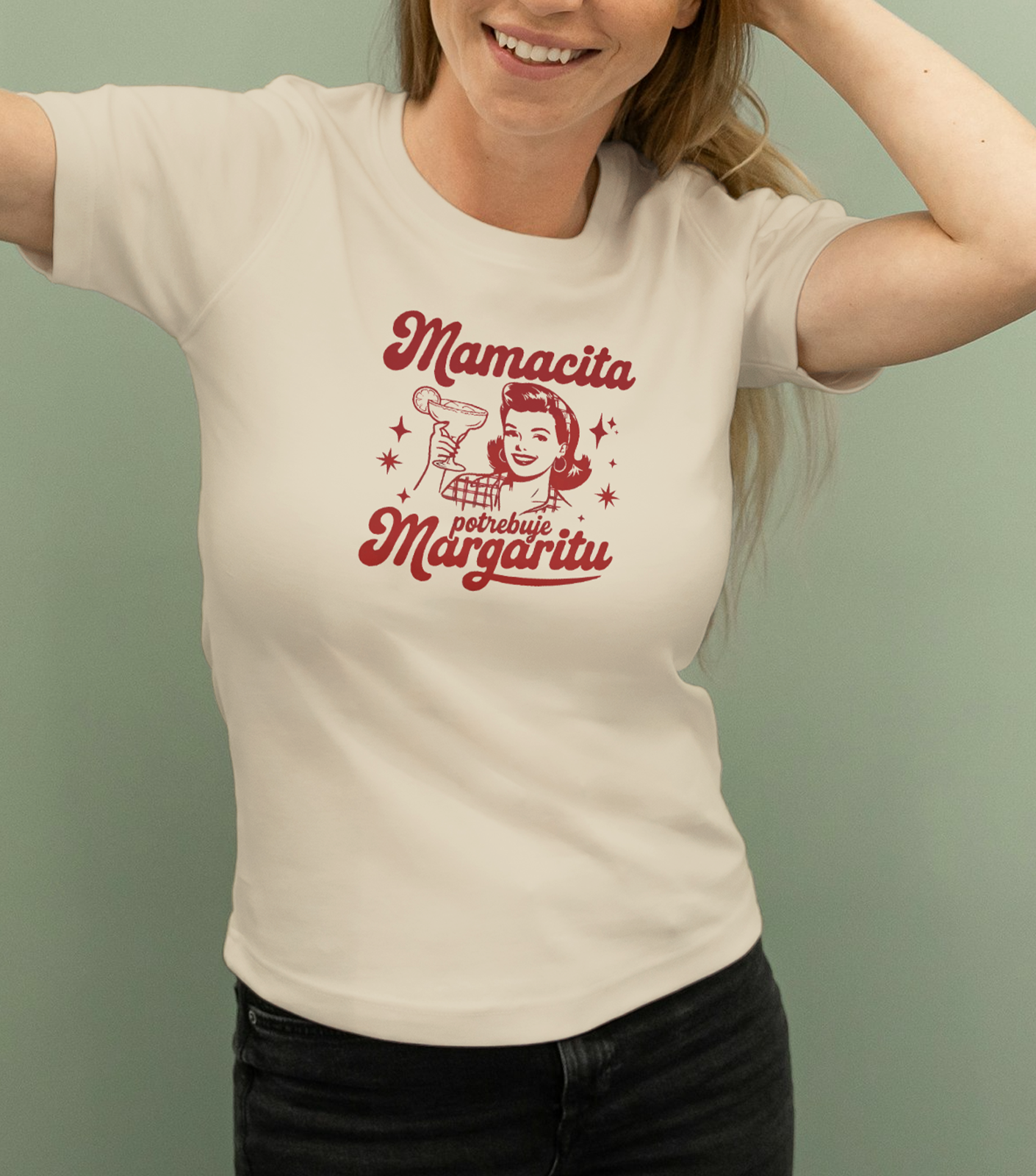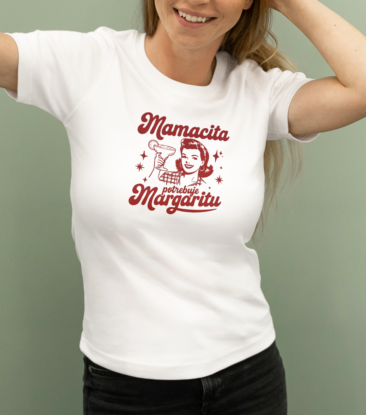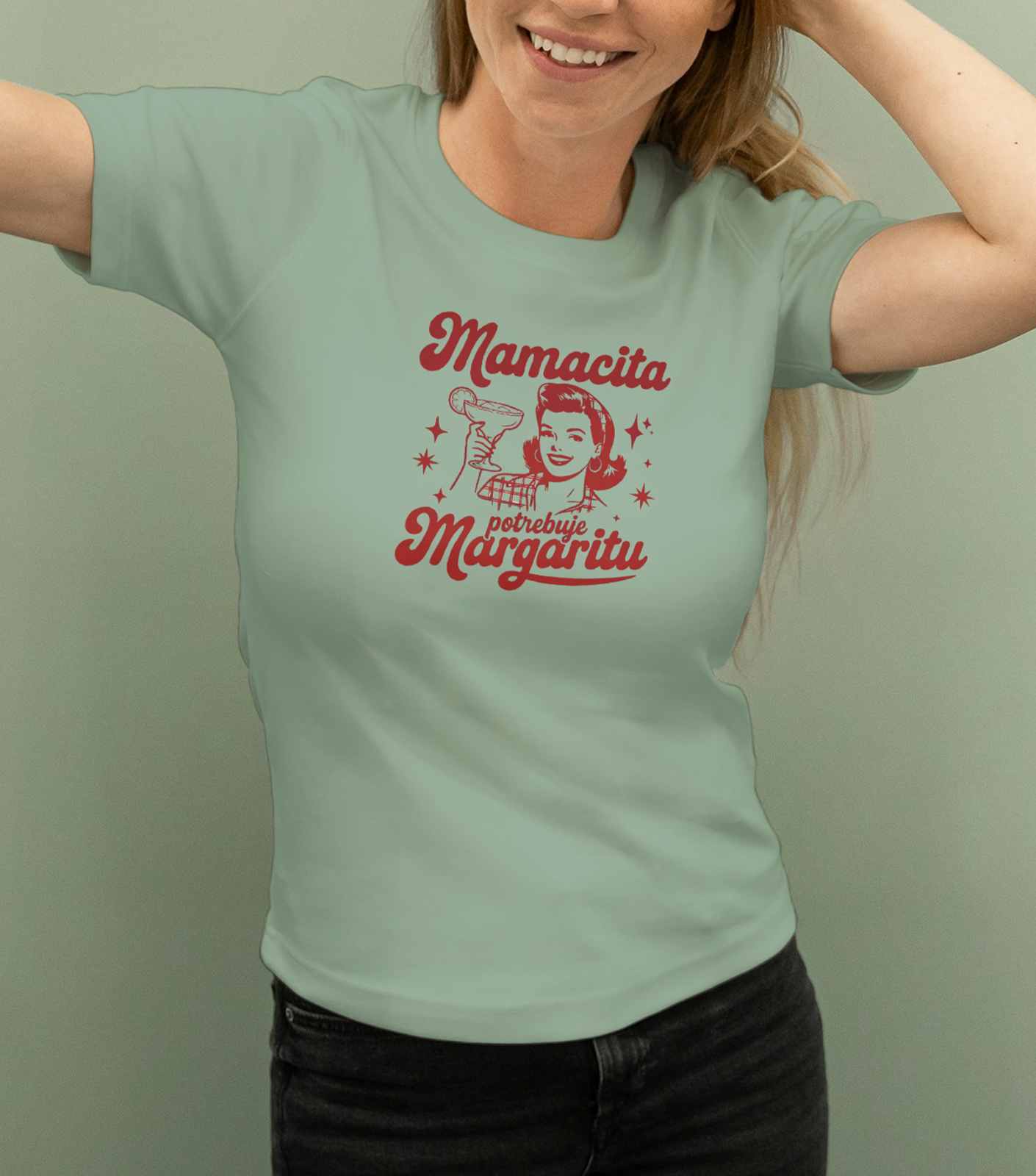 Dámske tričko s potlačou „Mamacita potrebuje margaritu“ – štýlové tričko s motívom ženy.