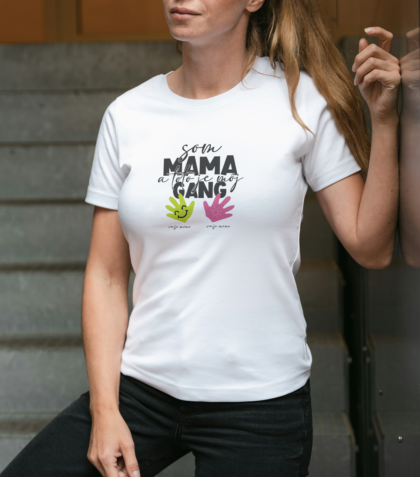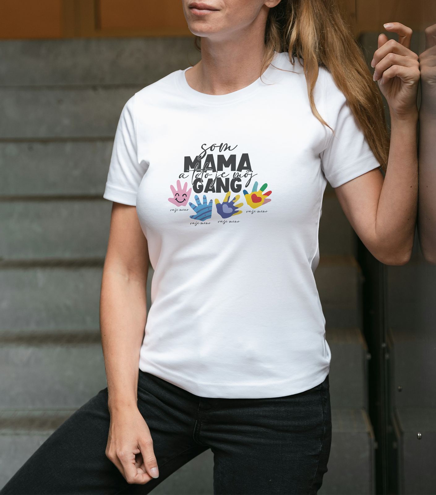 Dámske tričko s potlačou „Som mama a toto je môj gang“ – 3 varianty (2, 3 alebo 4 detské ruky) s vlastnými menami.