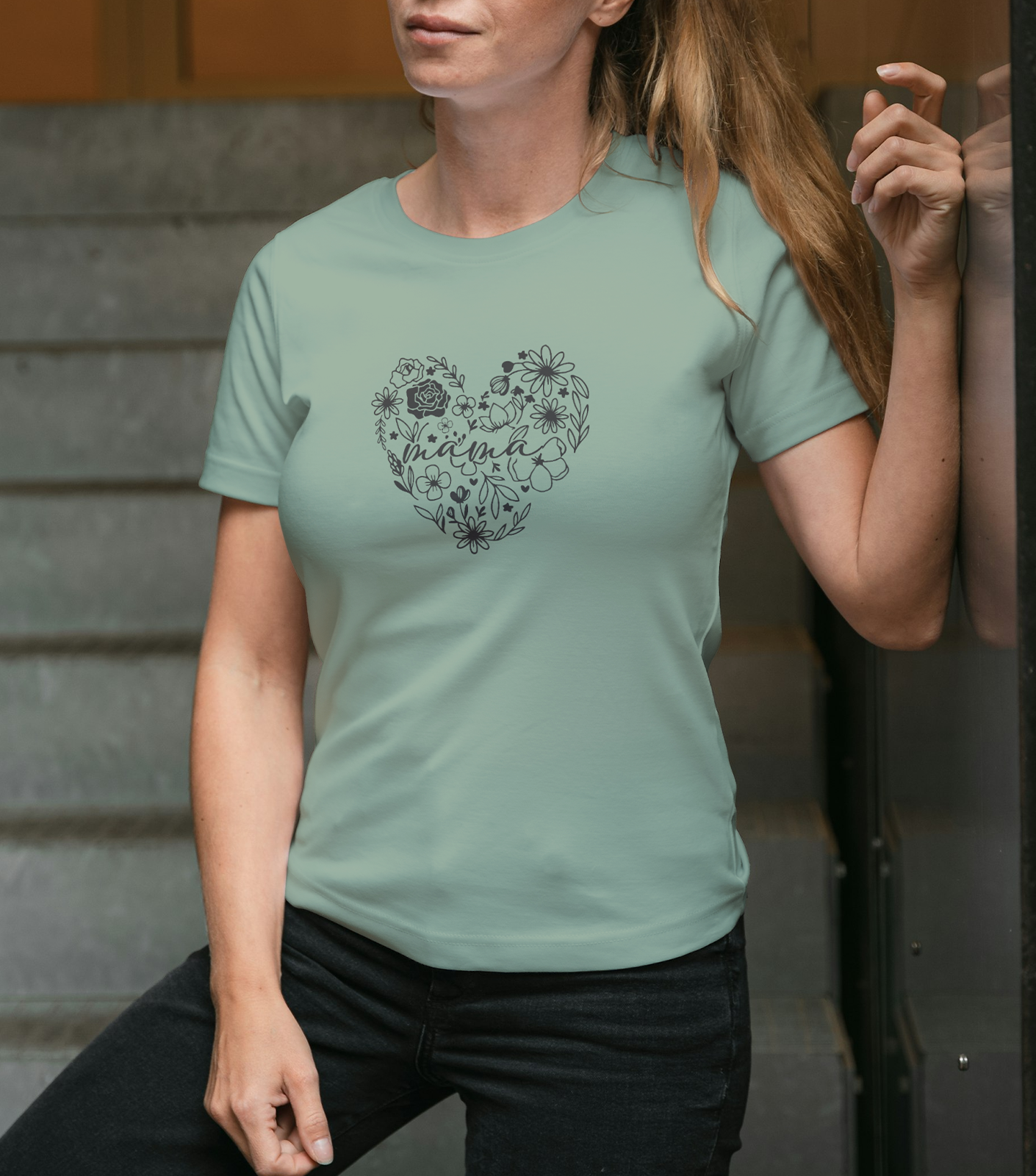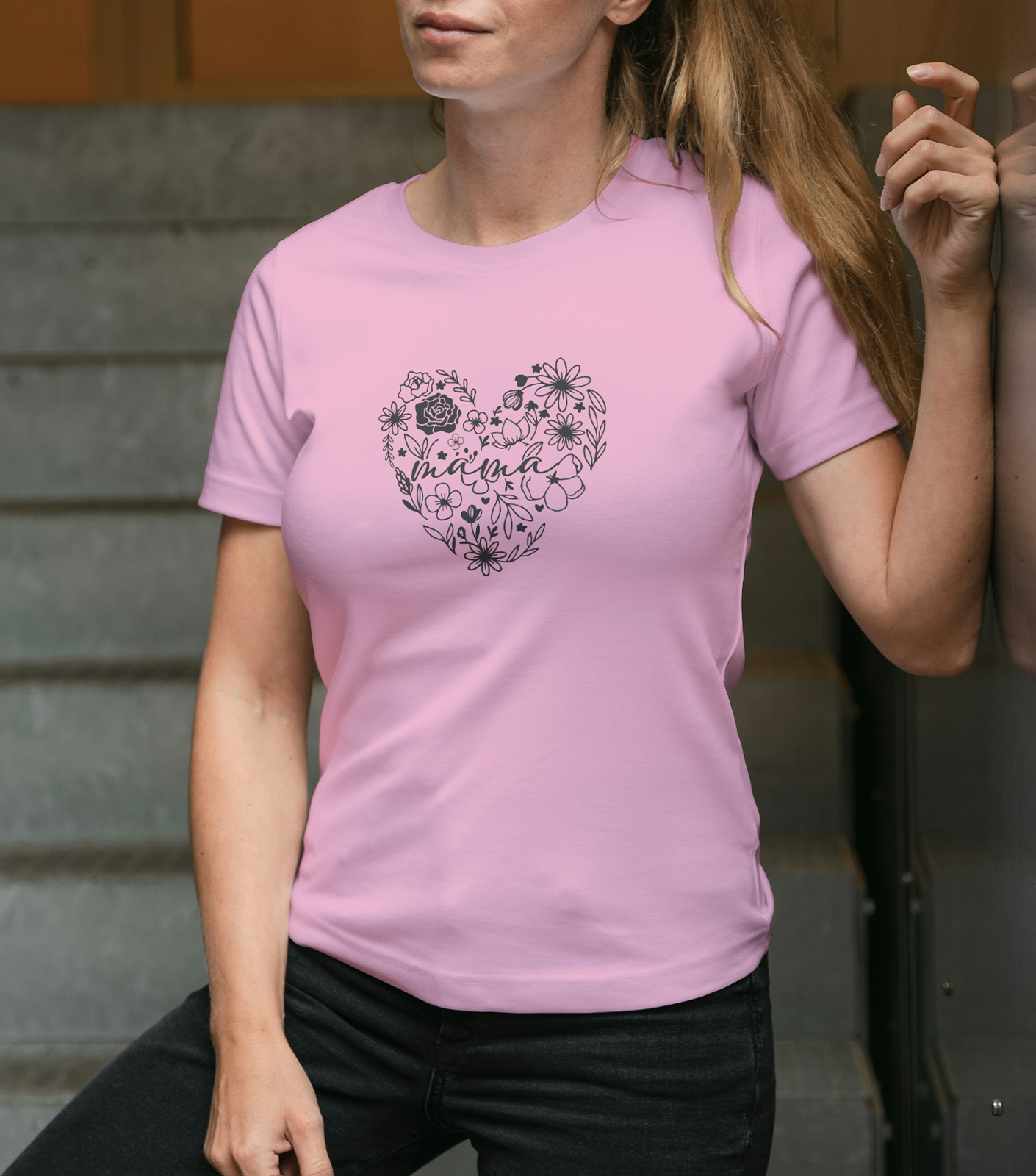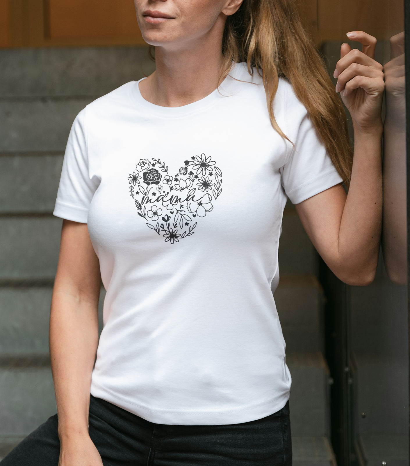 Dámske tričko s potlačou srdca a nápisom MAMA predstavuje jemný a vizuálne atraktívny kúsok oblečenia, ktorý vyzdvihuje materstvo a rodinné hodnoty. Dominantným prvkom je grafika srdca tvoreného kvetinovými prvkami, ktorá pôsobí nežne a zároveň výrazne.