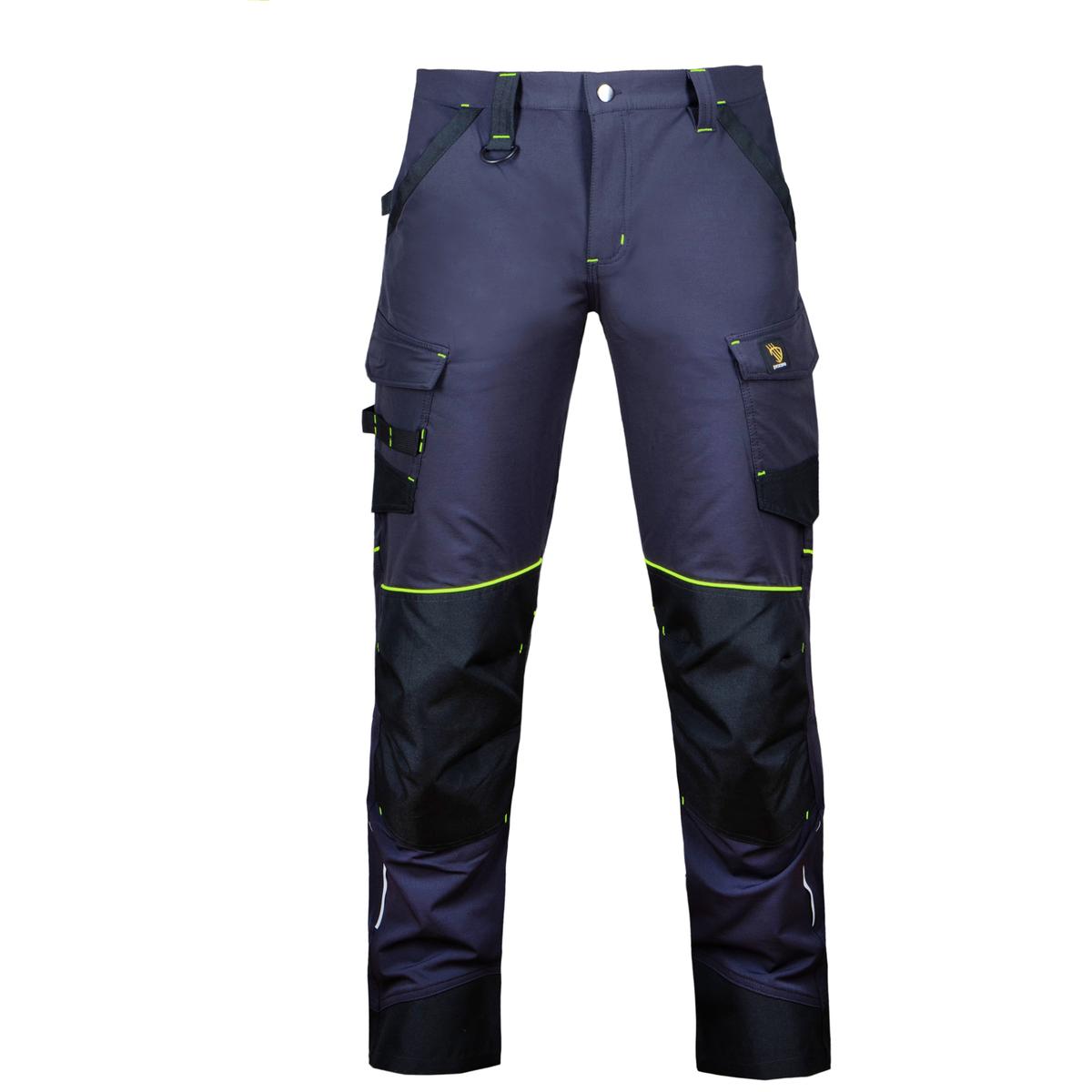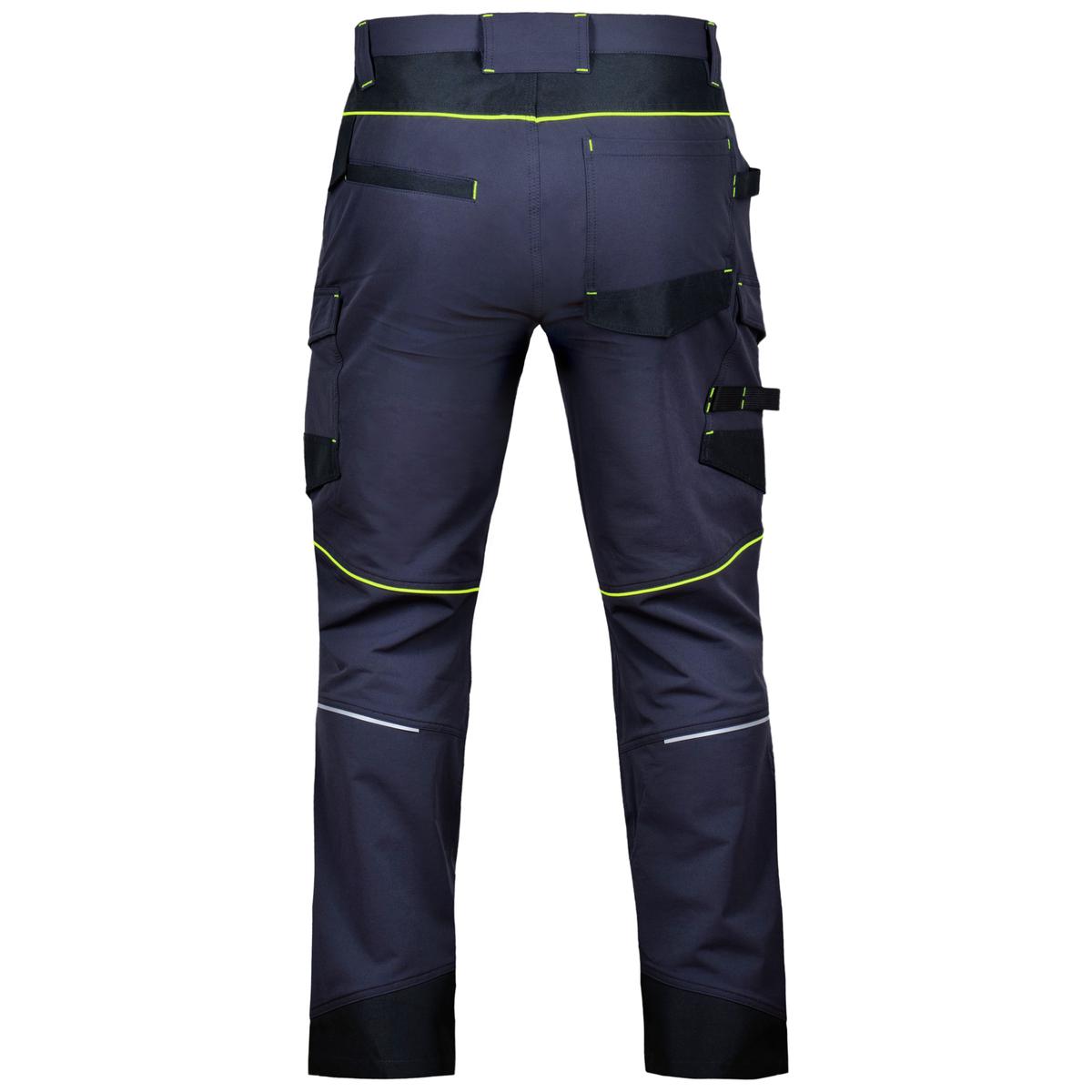 Kolena, vrecká aj spodná časť nohavíc sú spevnené odolnou tkaninou Oxford, ktorá pomáha predchádzať opotrebovaniu pri intenzívnom používaní. Materiál pracovných nohavíc sa skladá z 92% polyamid a 8% elastan s gramážou 240g/m2. Nohavice zabezpečujú vysokú flexibilitu a komfort pri pohybe.