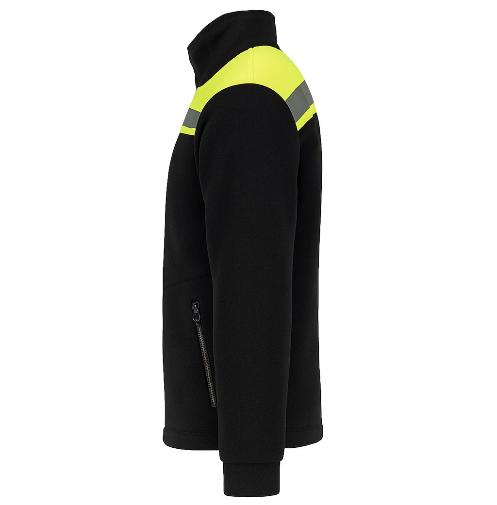 Praktická a komfortná pracovná flísová mikina je navrhnutá pre pohodlie v náročných podmienkach. Model NEOPLUS FLHV400 v kombinácii čiernej a výstražnej žltej spája moderný vzhľad s vysokou viditeľnosťou. Horná časť mikiny je doplnená o žlto-zlatú (fluorescenčnú) farbu, reflexným pásom na hrudi a chrbte, ktorý zvyšuje bezpečnosť používateľa pri práci vonku, v stavebníctve, doprave či logistike.