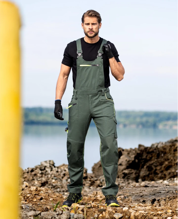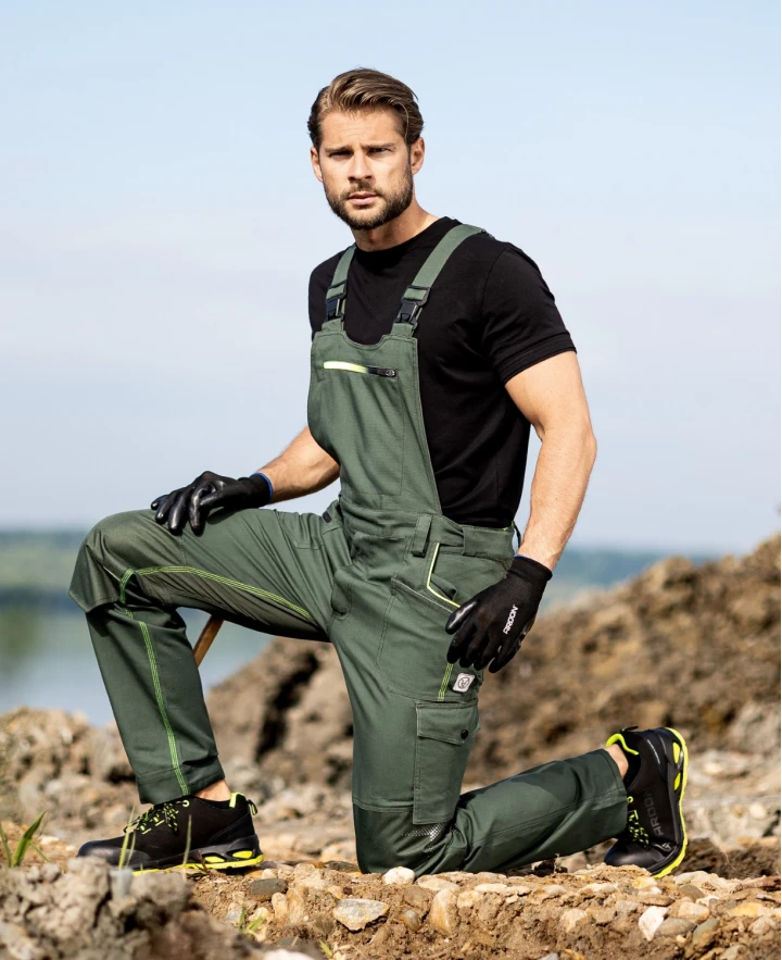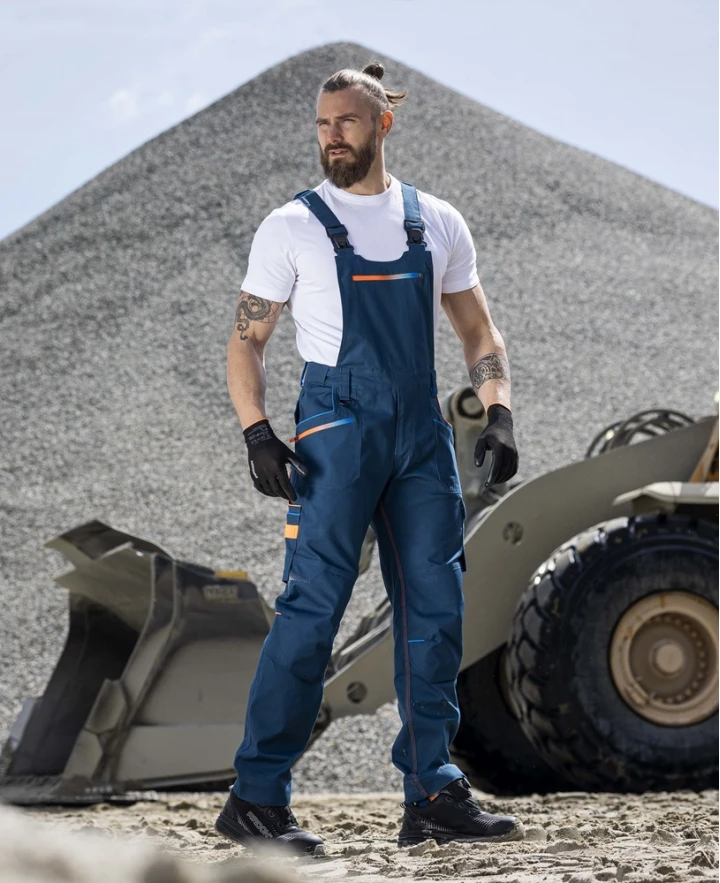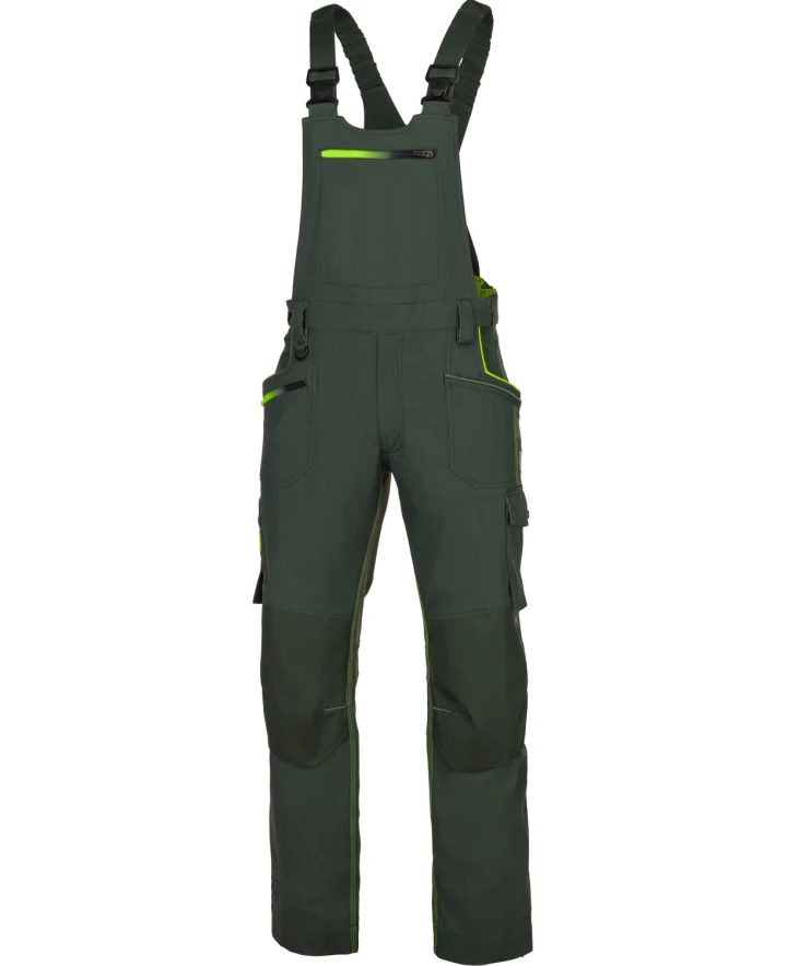 - -strečové bavlnené montérkové nohavice s náprsenkou zo špeciálneho materiálu Amalytton®, ktorý vyniká zvýšenou pevnosťou a hladkým, jemným povrchom