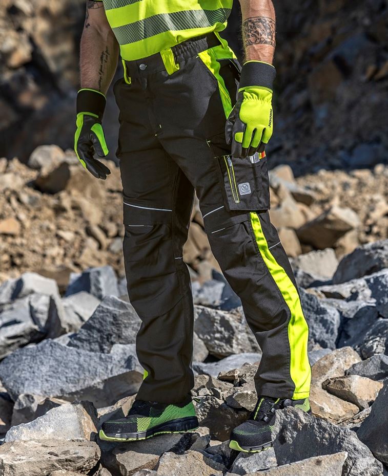 Pracovné nohavice do pása ARDON® NEON čierno-žlté – reflexné montérkové nohavice s vysokou odolnosťou.