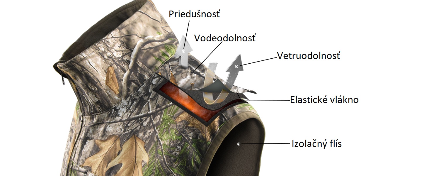 Kamuflážna vesta je navrhnutá tak, aby poskytovala optimálnu kombináciu tepla a priedušnosti. Je vhodná ako vrchná vrstva počas jesene alebo ako vnútorná vrstva pod bundu v zimnom období. Materiál je príjemný na dotyk, pružný a prispôsobí sa pohybu tela.