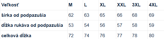 Tabuľka veľkostí: