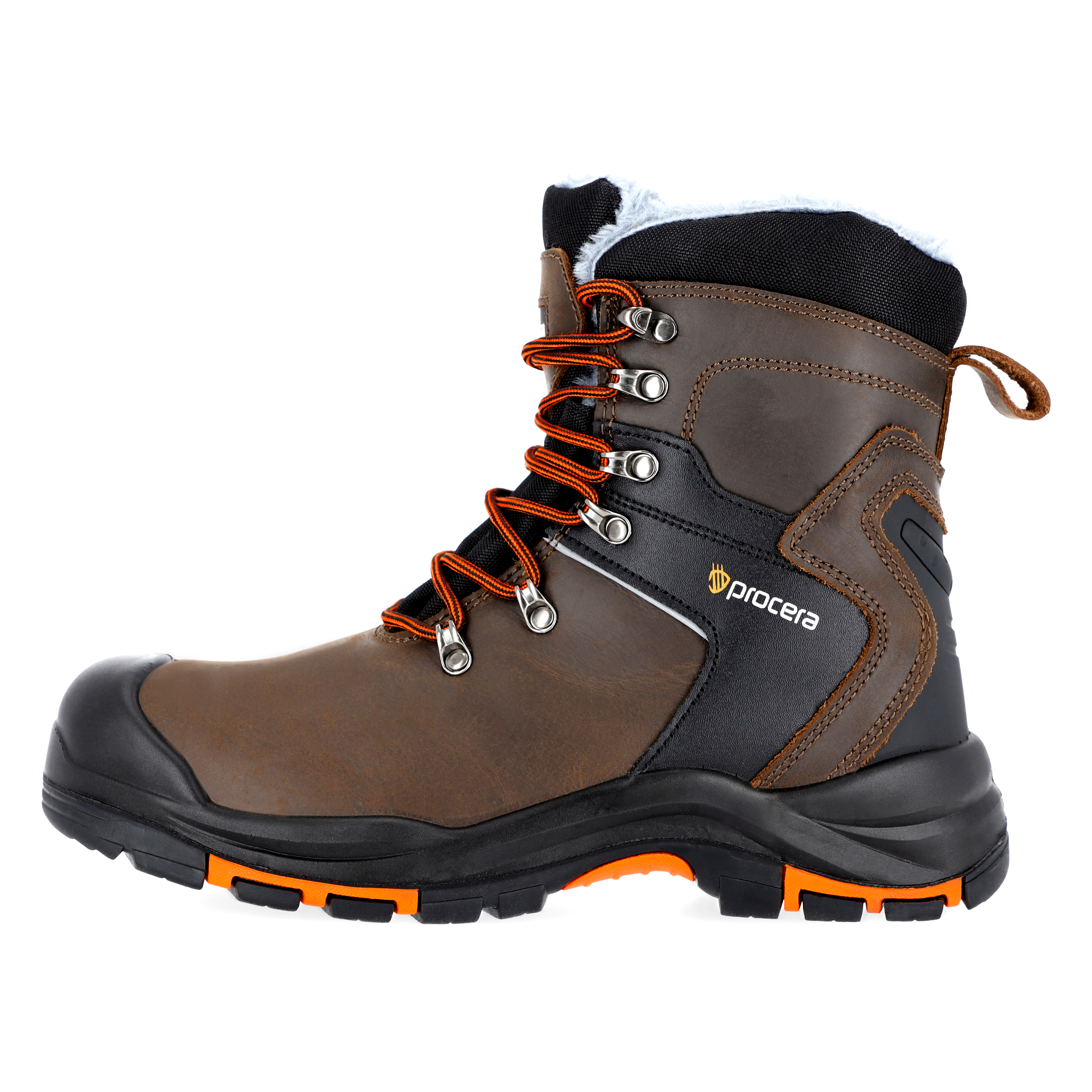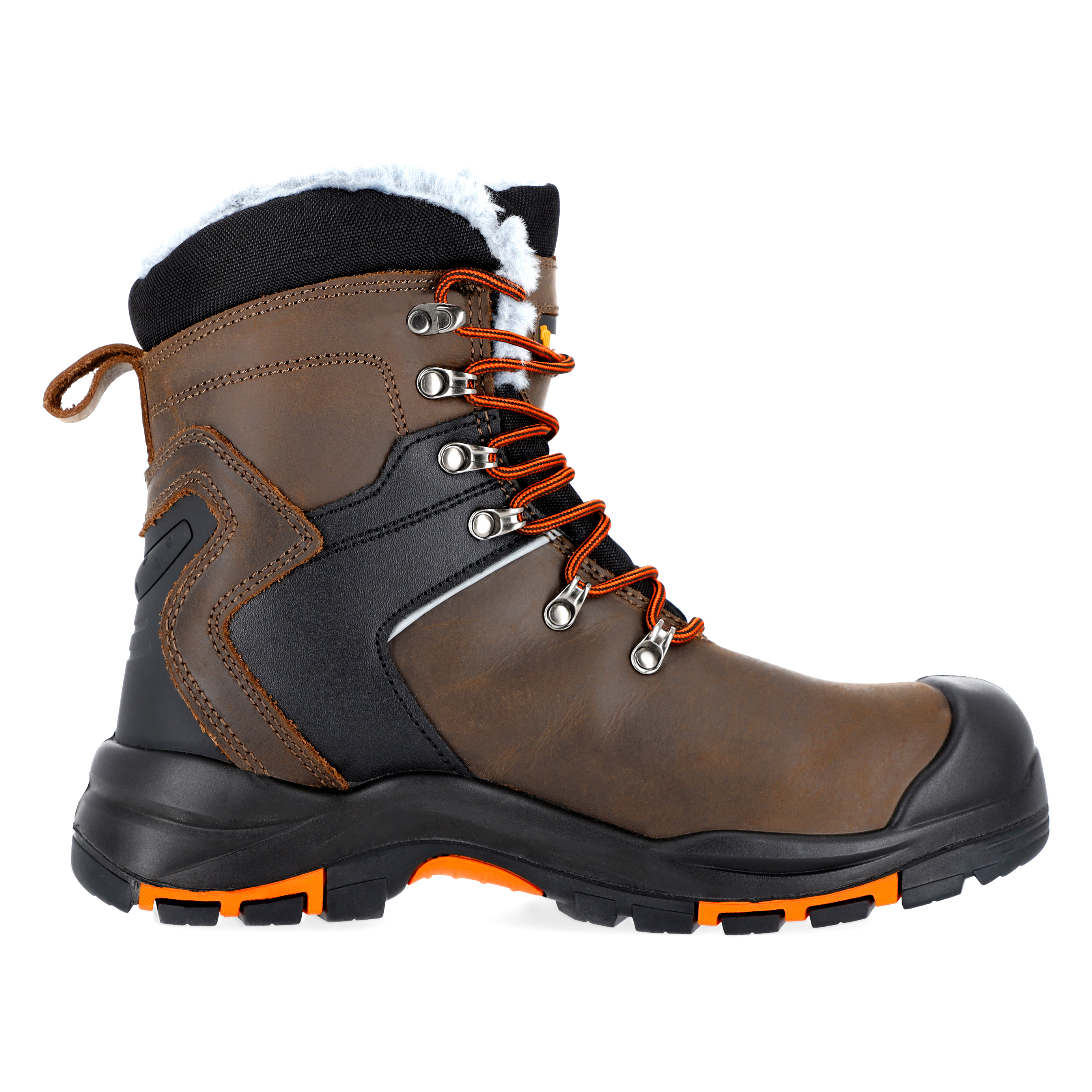 Vrchný materiál tvorí kvalitná prírodná hovädzia koža typu „Crazy Horse“ s hrúbkou minimálne 2,2 mm, čo zabezpečuje výnimočnú trvácnosť a odolnosť. Vnútro je zateplené umelou kožušinou, ktoré poskytuje komfort aj v nízkych teplotách. Ideálna na jeseň a zimu alebo prevádzky kde je človek vystavený chladu. Obuv je vybavená ochrannými prvkami: kompozitnou kovovou špicou odolnou voči nárazom 200 J a tlakovým silám 15 kN, kelverová stielka proti prepichnutiu chráni chodidlo proti prepichnutiu až do 1100 N.