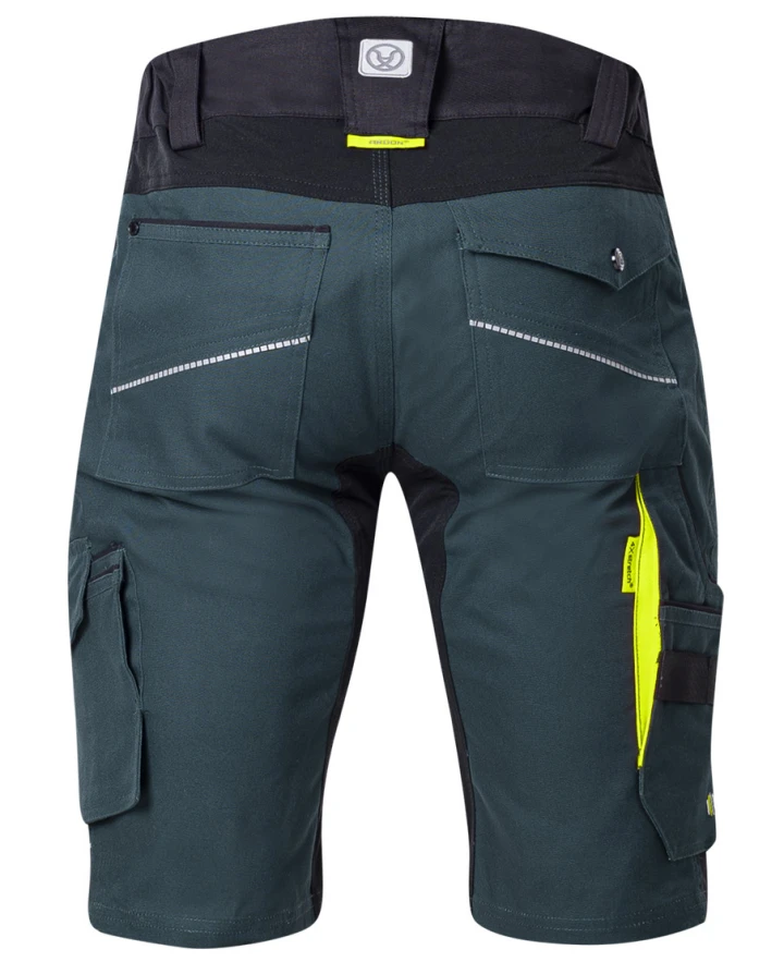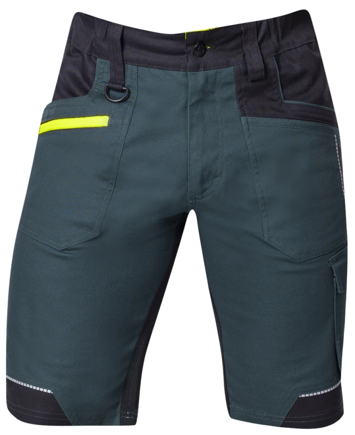 Tieto strečové montérkové kraťasy sú vybavené ergonomickým a funkčným strihom, vyrobeného zo špeciálneho materiálu Amalytton, ktorý zaručuje odolnosť a pevnosť bavlnenej tkaniny. Tieto šortky majú pohodlnú elasticitu materiálu a perfektnú dýchateľnosť materiálu čo zaručuje pohodlný pocit pri nosení. Montérkové šortky sú vybavené množstvom vreciek na pracovné veci. Zvýšenú viditeľnosť zaručujú reflexné detaily pásy umiestnené na prednej a zadnej časti.