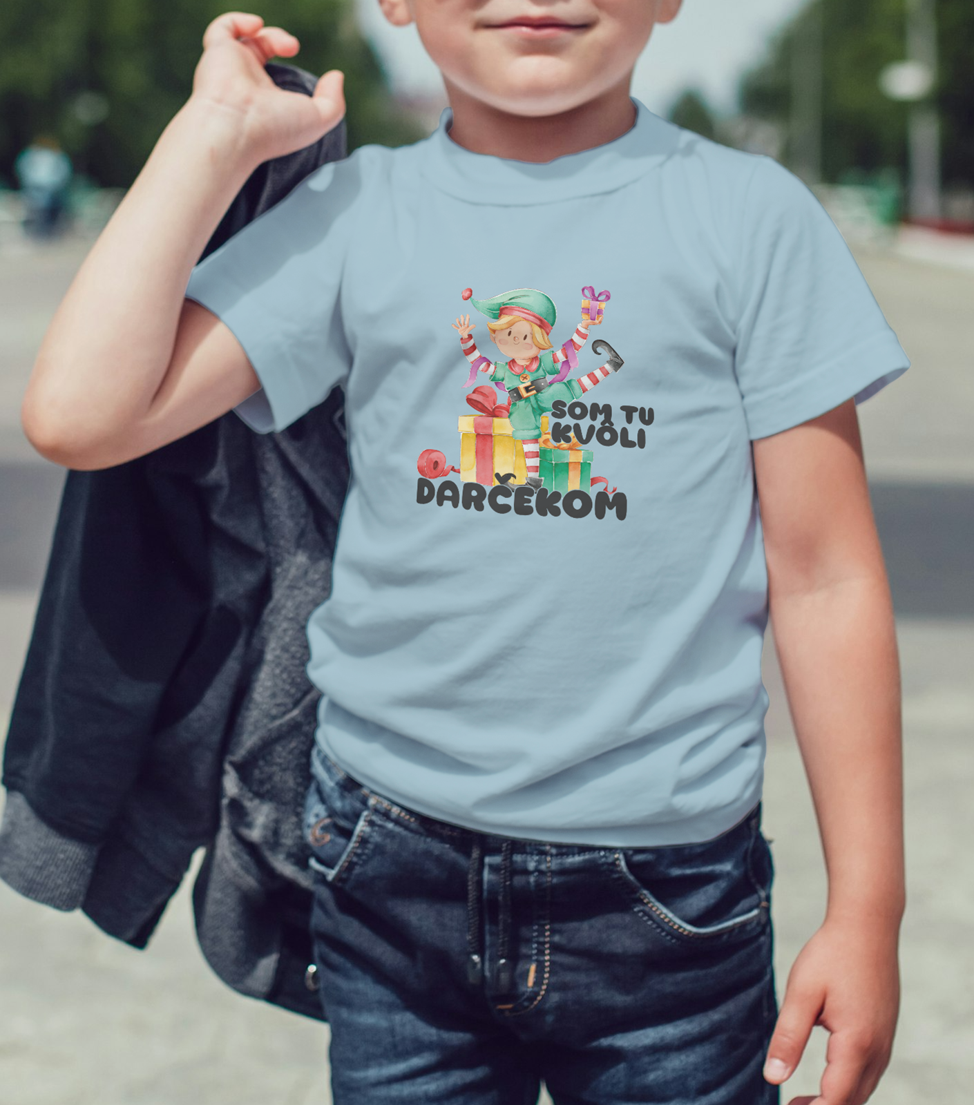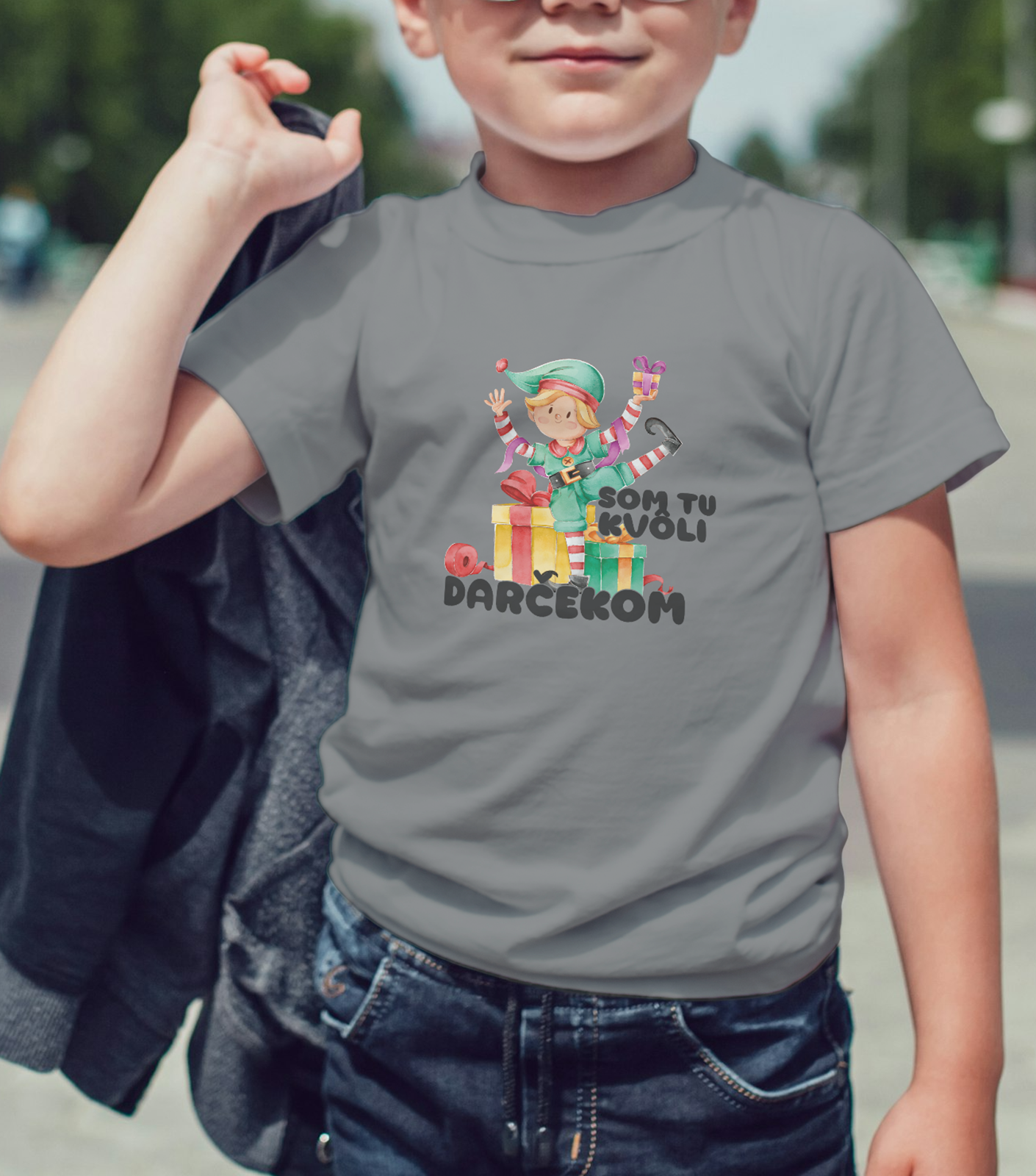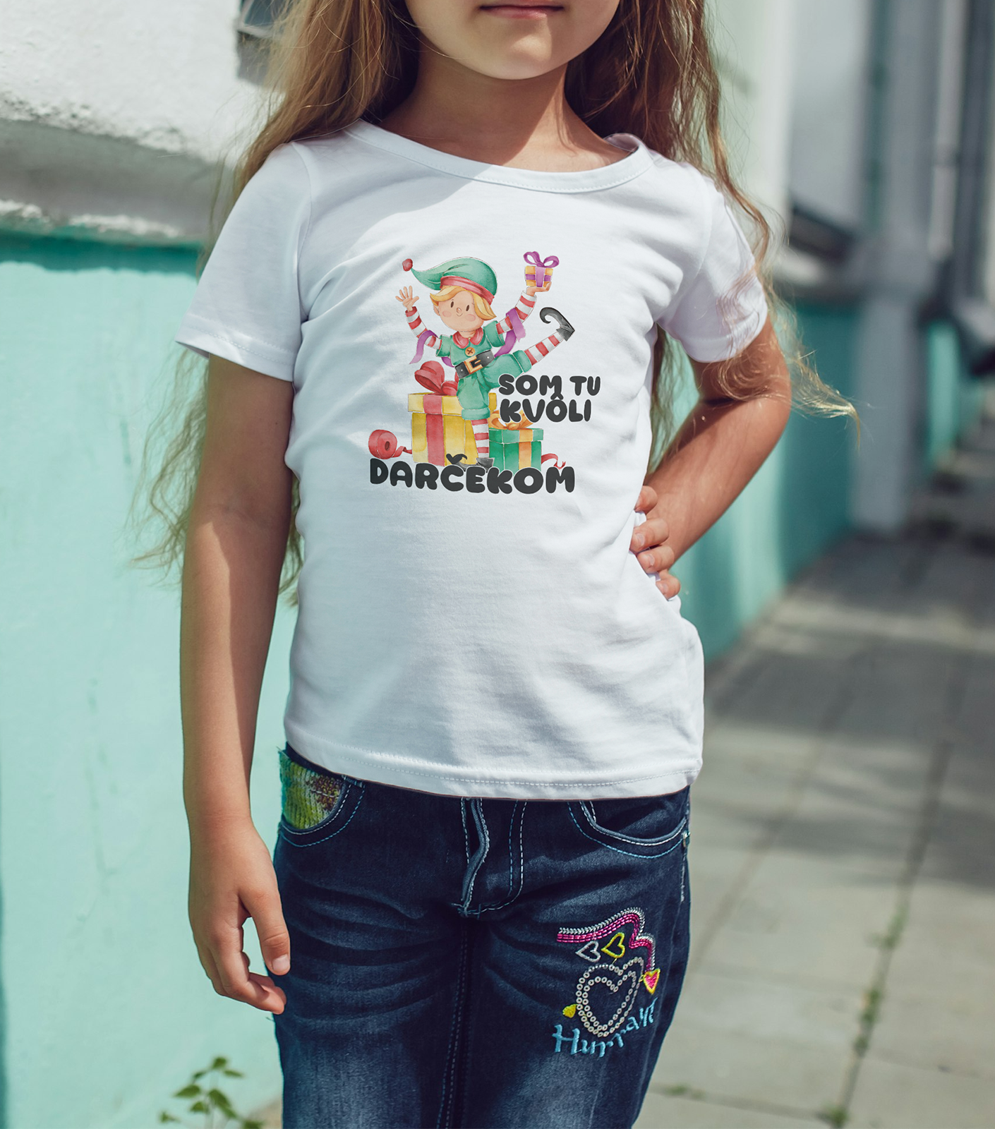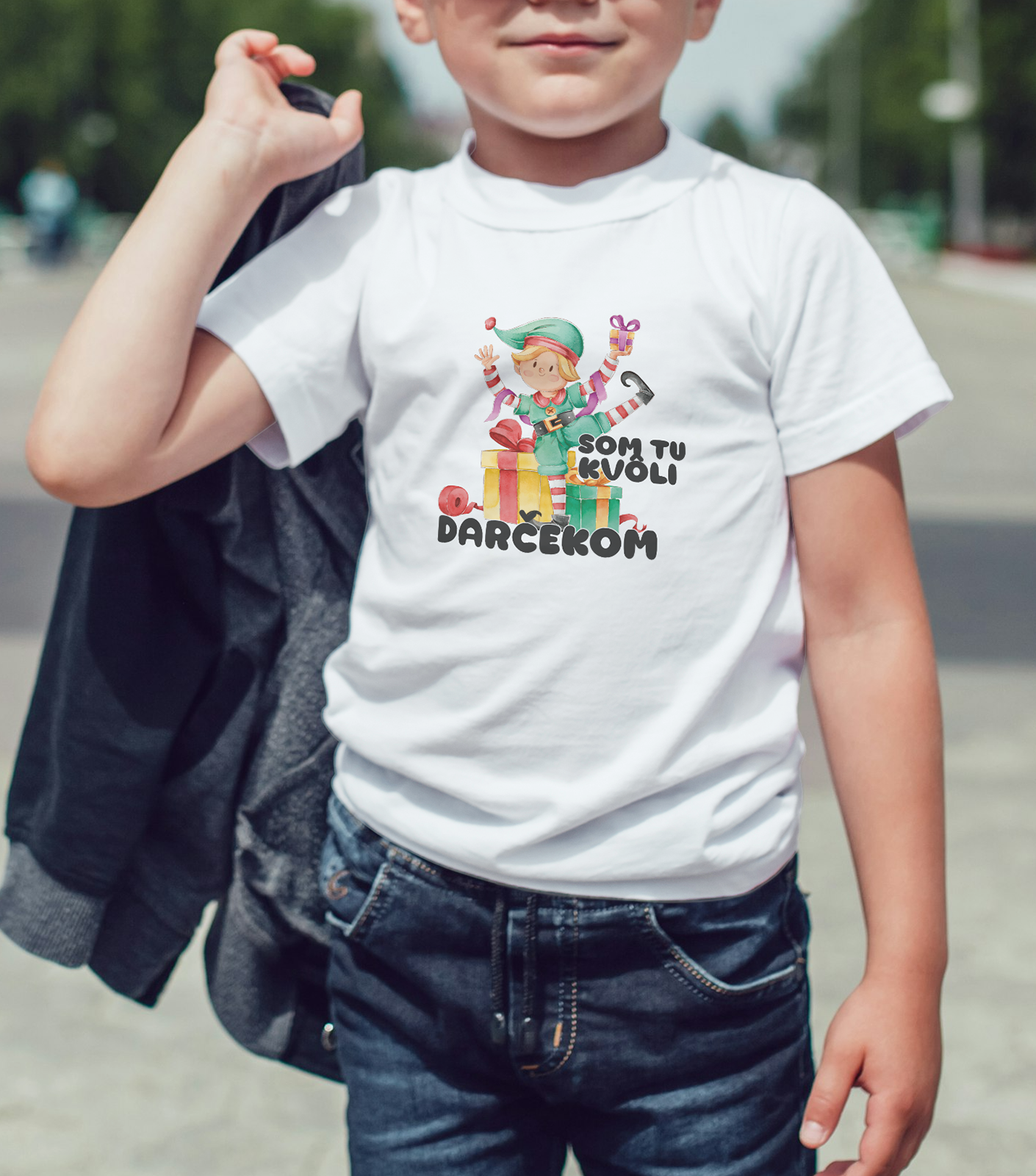 Rozžiarte detskú vianočnú atmosféru originálnym tričkom so škriatkom, ktorý má jasno v tom, prečo sú Vianoce tak super – kvôli darčekom!
