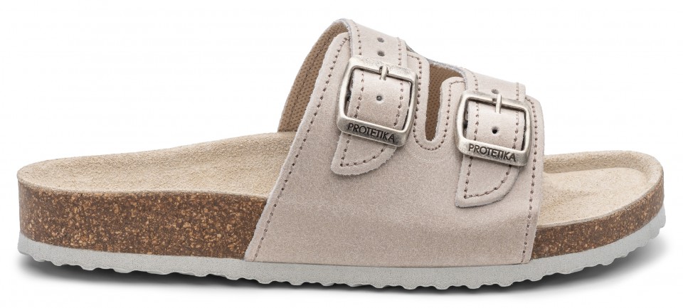 Sandále majú dvojprackové zapínanie, ktoré umožňuje rýchle a pohodlné prispôsobenie remienkov podľa potreby. Zvršok je vyrobený z kvalitnej prírodnej kože a anatomicky tvarovaný výlisok je z prírodného korku. Stielka so širokou prstovou časťou a pätovým lôžkom zabezpečuje prirodzené rozloženie váhy tela a stabilitu chodidla pri chôdzi. Podpora priečnej a pozdĺžnej klenby chodidla aktívne prispieva k prevencii plochonožia.