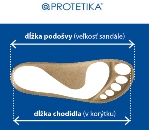 PROTETIKA Orthopedic tvorí podošva so stielkou kompaktný anatomicky tvarovaný výlisok. Pozor na špeciálne číslovanie v centimetroch: Veľkostná tabuľka rehabilitačných sandál PROTETIKA neuvádza dĺžku stielky, ale dĺžku podošvy. Miesto pre chodidlo je len vo vnútri výlisku. Chodidlo nemá zasahovať na vyvýšené okraje. Vyberte si preto veľkostné číslo, ktoré má podošvu minimálne o 1 cm väčšiu ako je dĺžka chodidla. Zdravotné prvky (lôžko pre pätu, podpora klenby chodidla a oddeľovače prstov) tak budú pôsobiť na správnom mieste.