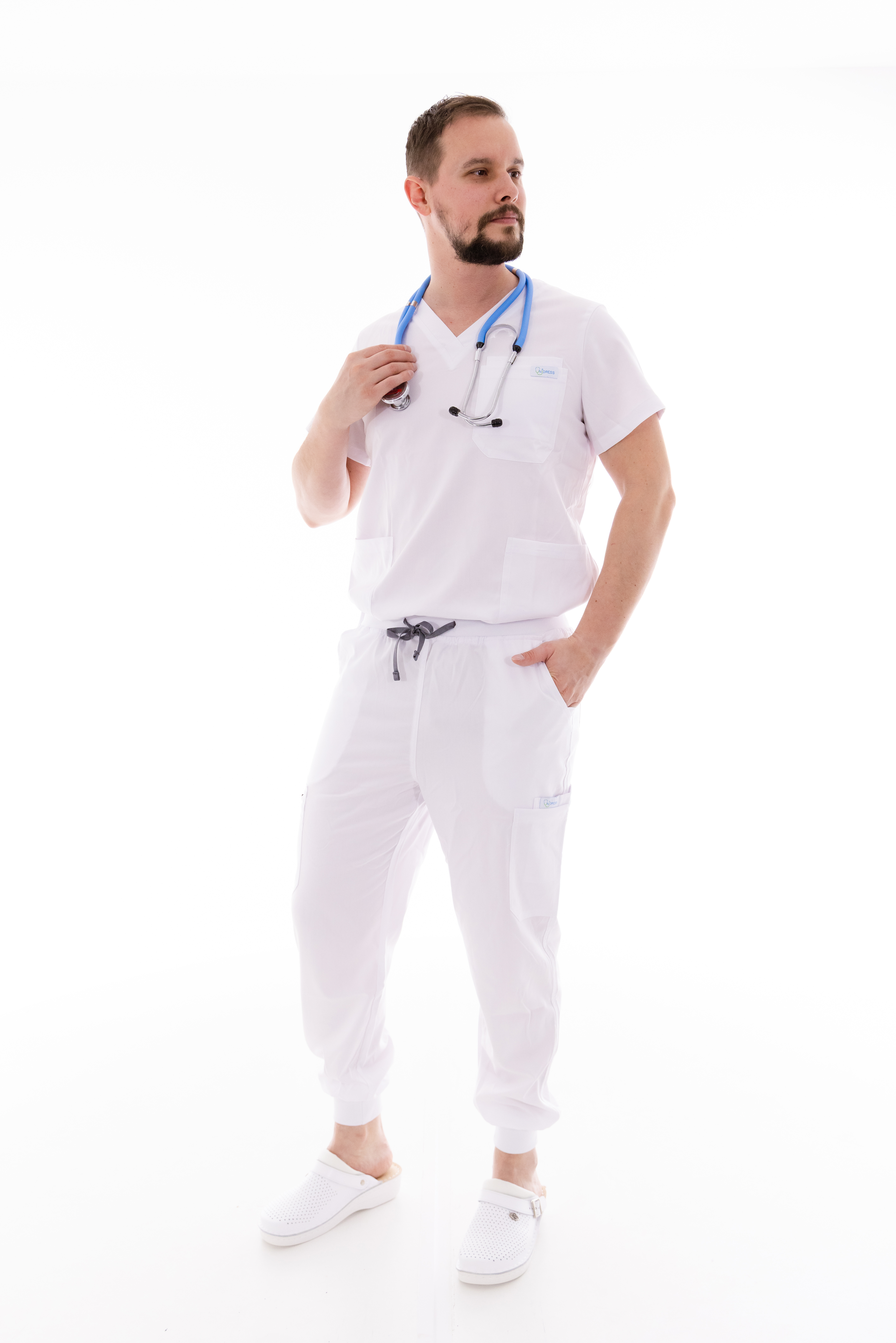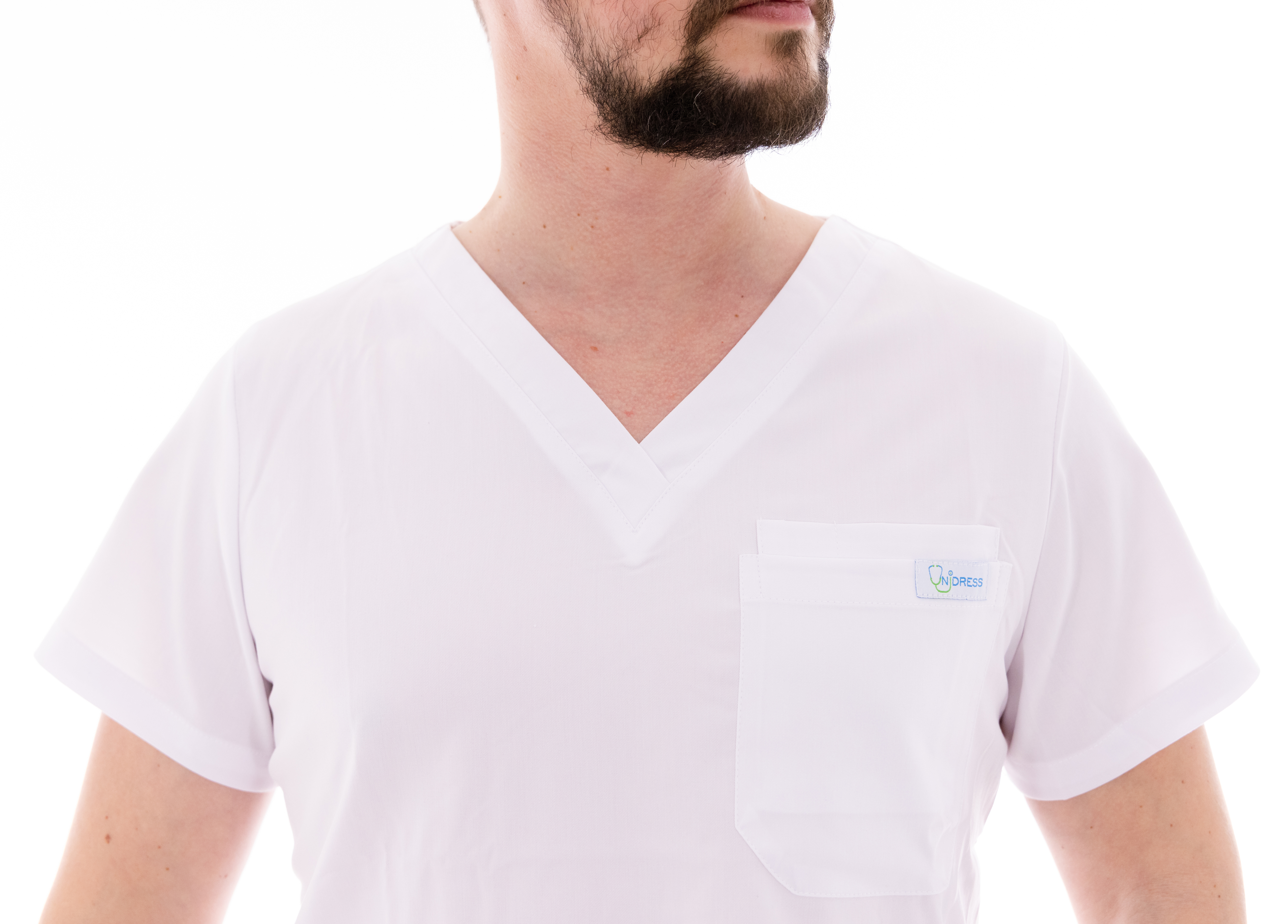 Unisex zdravotnícka blúzka UNIDRESS biela pracovná tunika pre zdravotníkov.