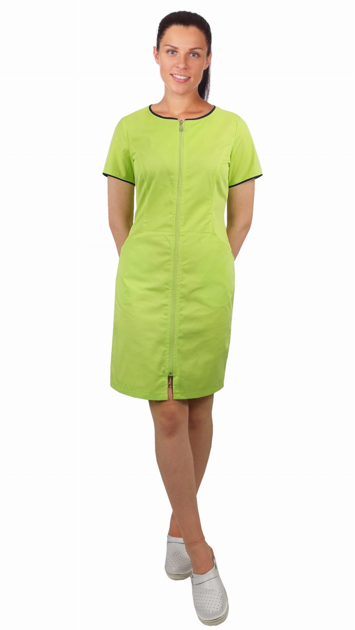 Zdravotnícke šaty limetkové na zips.