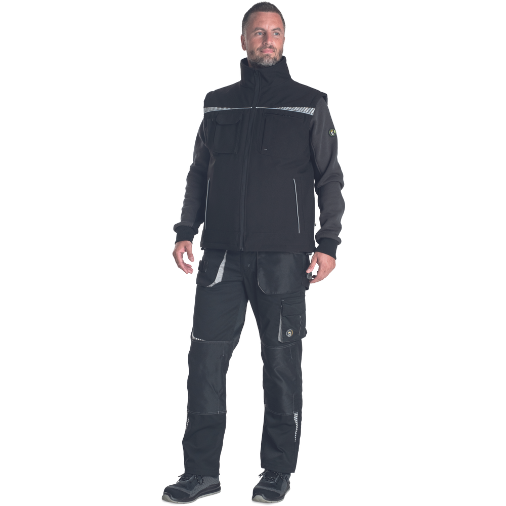 Vesta je vybavená praktickými vreckami. Dvoma bočnými na zips, jedným náprsným vreckom na zips, špeciálnym vreckom na mobil s klopou na suchý zips a dvoma vnútornými vreckami, takže všetky drobnosti budú vždy po ruke. Reflexné detaily a lemovanie zvyšujú viditeľnosť pri horších svetelných podmienkach a prispievajú k bezpečnosti pri práci.